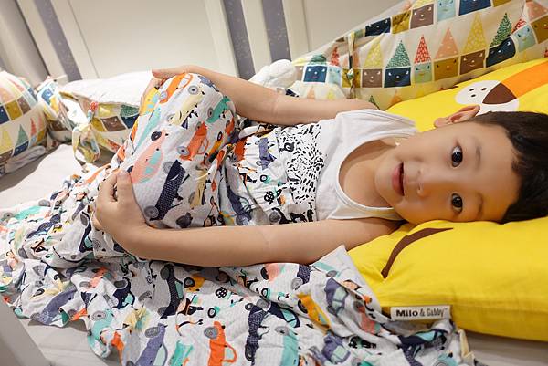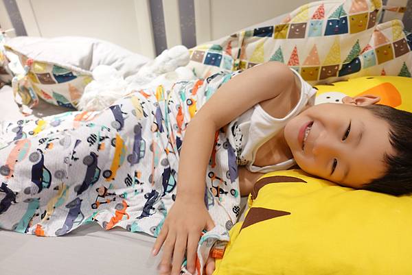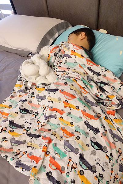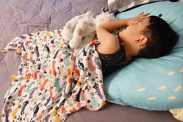 現在半夜去看他也比較少踢被子啦~