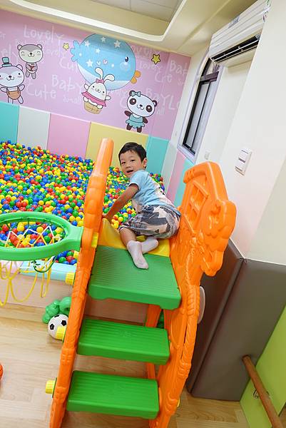 甚至還有一個大球池跟溜滑梯!!!![]()