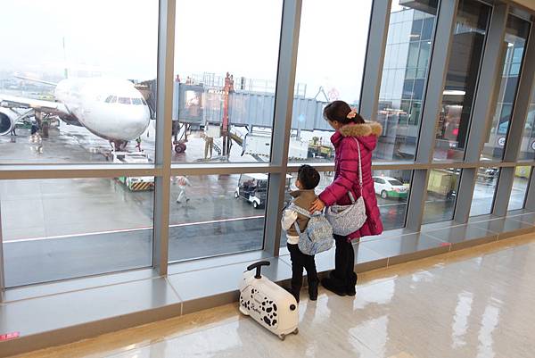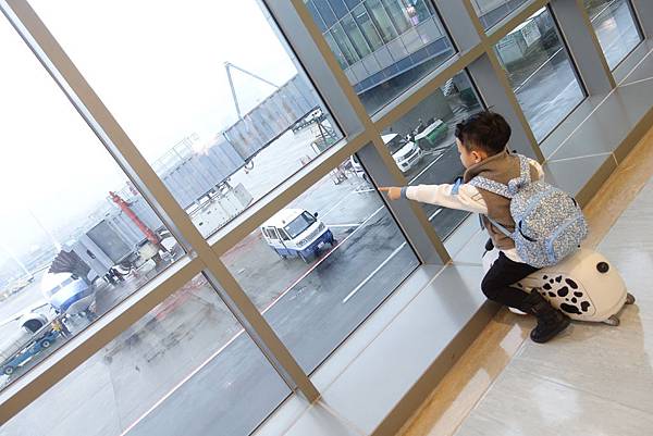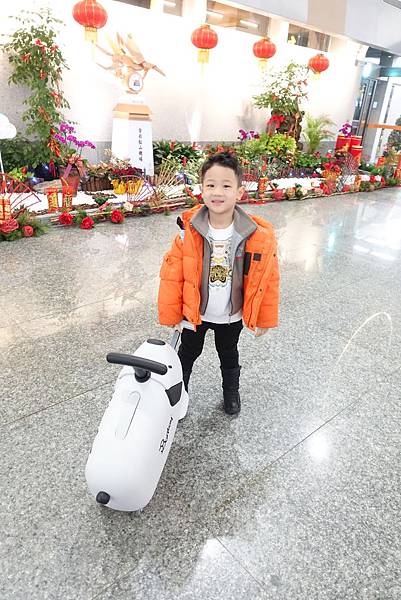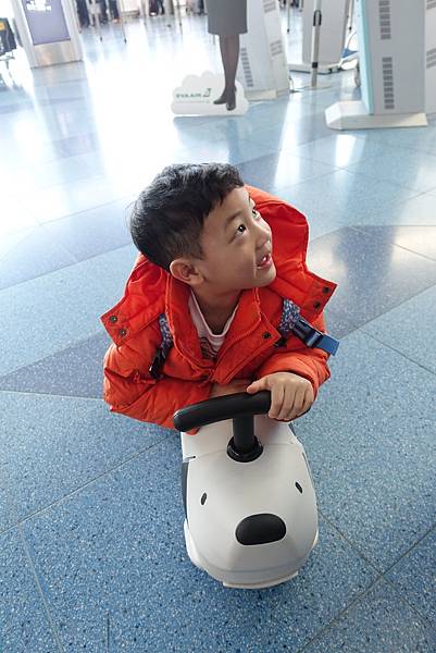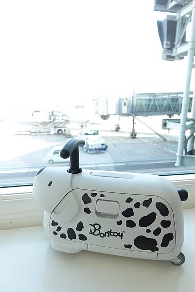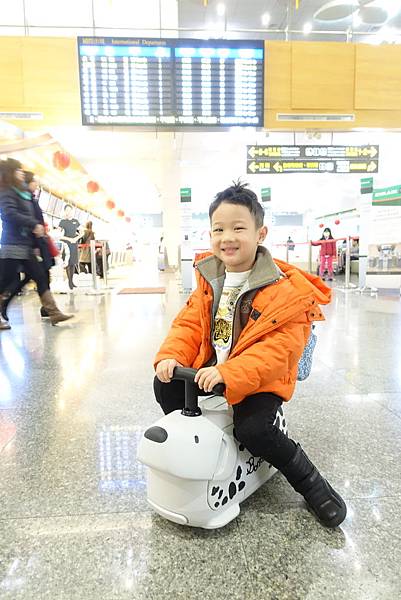 小雞毛可以一路騎著到登機口 坐著看飛機 騎著到處滑到處玩