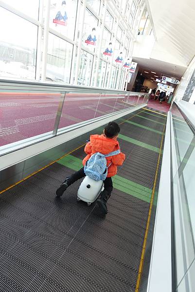 小雞毛還給他直接騎到自動走道上去 滑的開心的咧~