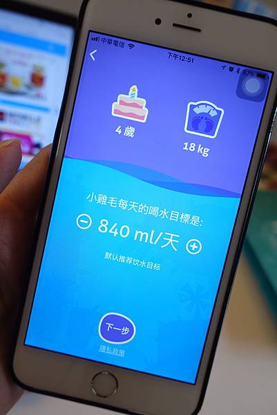 跟著步驟設定 輸入小朋友的體重、年齡等數據