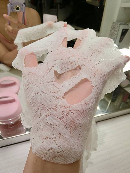 白蕾絲拆封之後的觸感 也讓我很驚訝 還真沒敷過這種材質的面膜