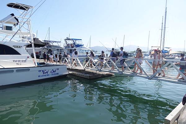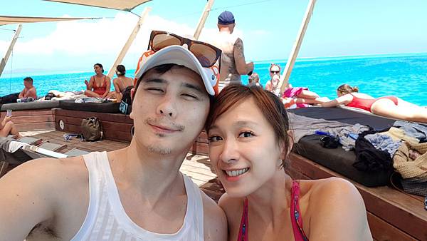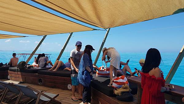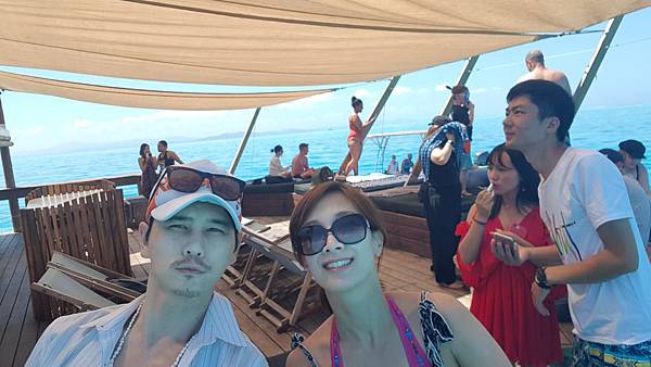 不少人跟船上借了面罩和蛙鞋 準備浮潛囉