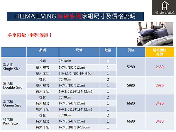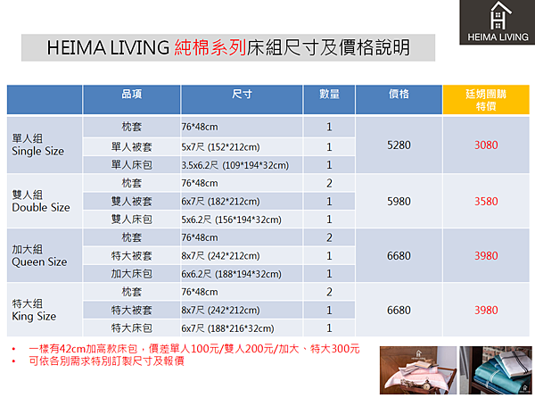 HEIMA LIVING跟百貨高檔品牌一樣是採用60支360條的等級