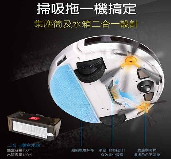 ◆集塵盒及水箱二合一設計 掃吸拖一機搞定