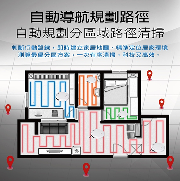 ◆自動認路並規畫路徑清掃及分區清掃功能
