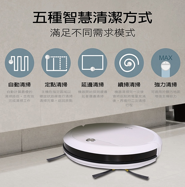 ▶️電量不足會自動回充、充滿電量後再次清掃行程,使用時間約50-70min、充電時間約180-240min~