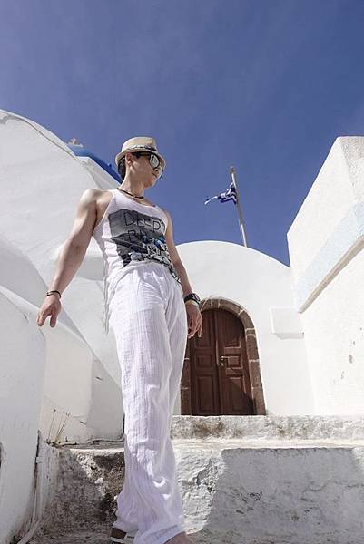配上藍天跟多半白色的建築 建議去希臘就是這樣穿就對了