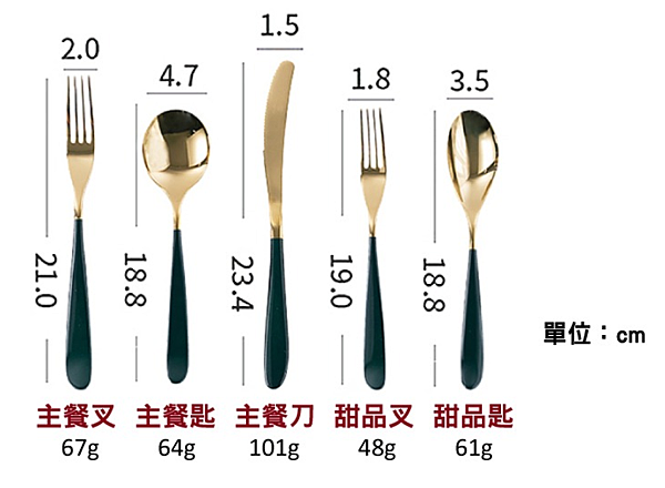 墨綠色的手柄 搭上金色的匙叉
