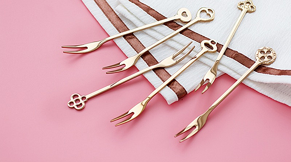 一整組小巧精緻的水果叉拿出來