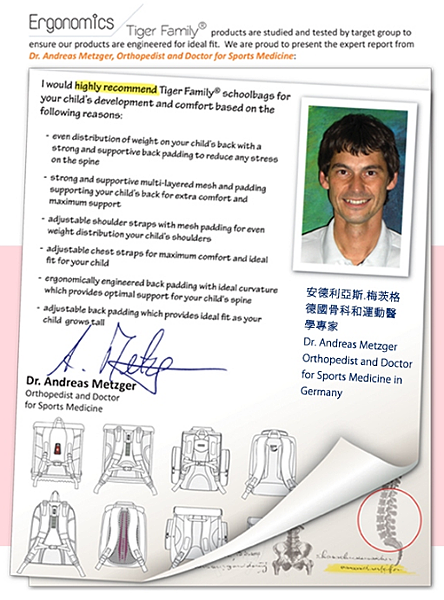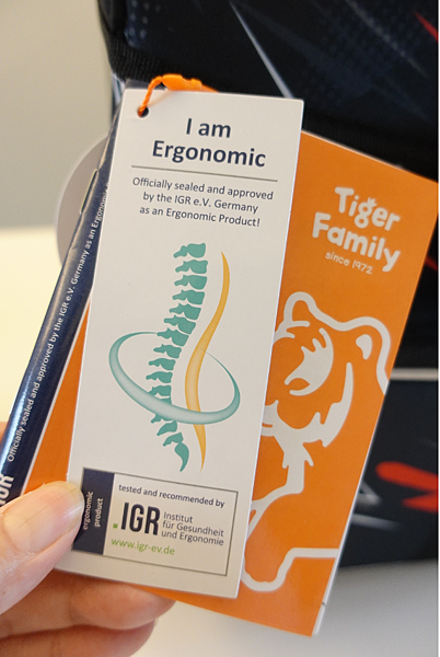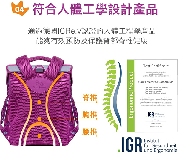 而Tiger Family的書包 因為有通過IGR國際協會認證 是符合人體工學設計的產品