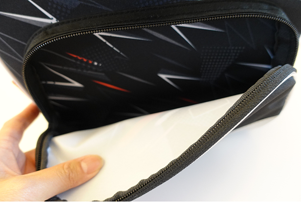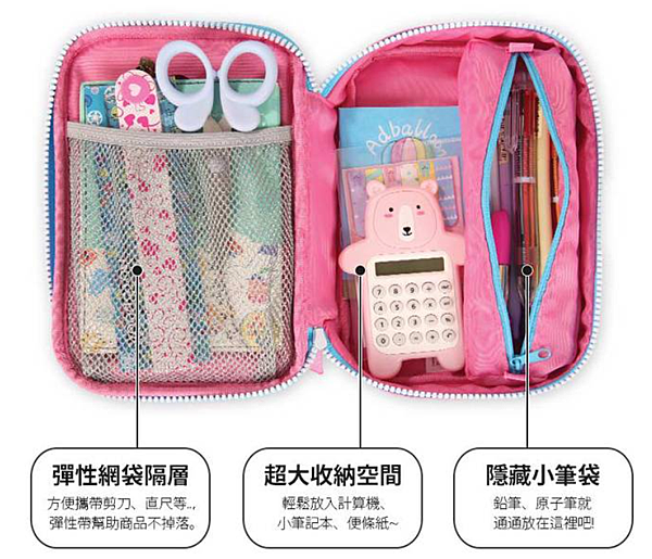 180對開的設計 裏頭有網袋跟內嵌式的小筆袋