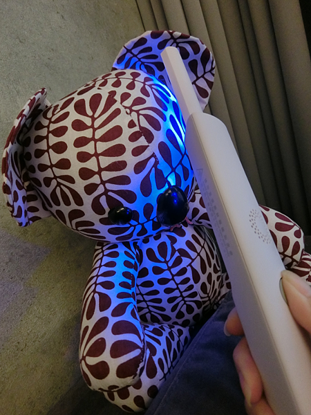 按下中間的按鈕 定點照射五秒(此時藍光亮起)