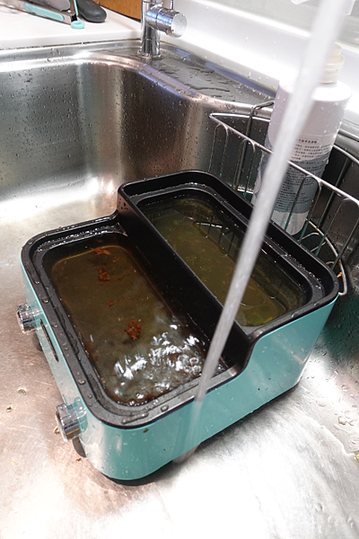 清洗上也很簡單 整個鍋子拔掉電源線 就可以直接拿去沖洗了