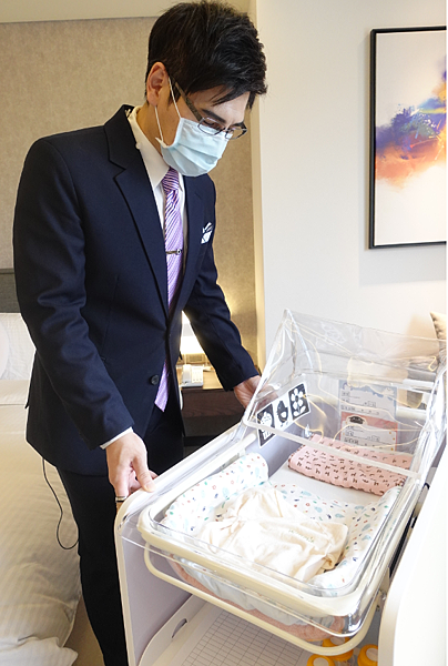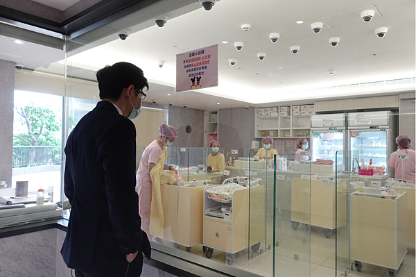 因為疫情管控的關係 爸爸媽媽一次只能帶兩名訪客上來嬰兒室