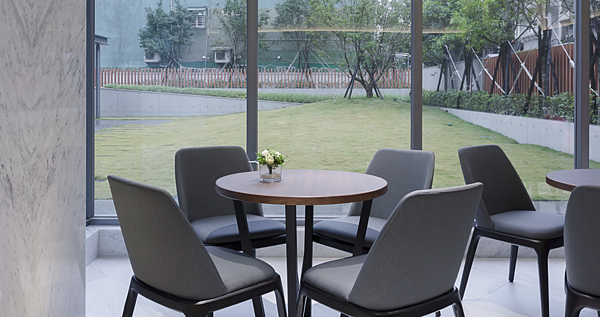 寬敞的交誼廳 也剛好就隔著綠地
