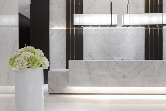 用整體白色系大理石 搭配現代簡約風的設計