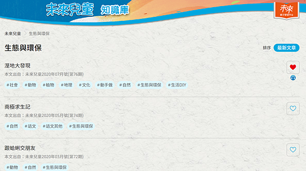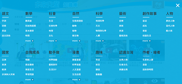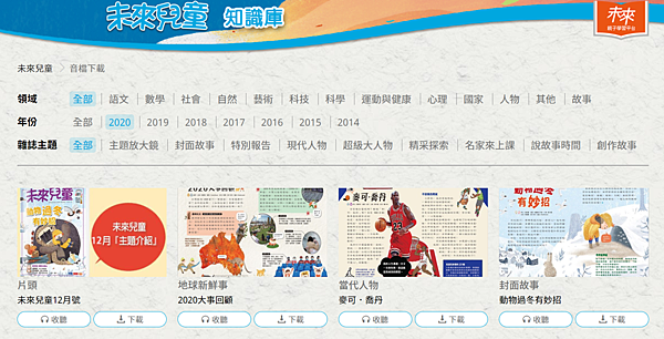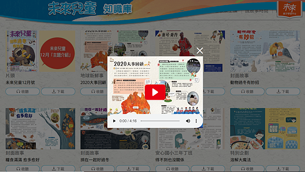 至於首頁的未來小學堂→則是把過去未來兒童拍的影音檔 集結在這個單元裡面