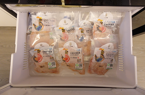 我家冷凍箱就會像這樣堆滿滿一排排的雞肉