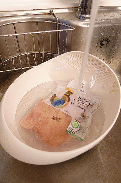 如果雞肉要切的話 建議就是解凍到一半還有點硬度切片再繼續退冰