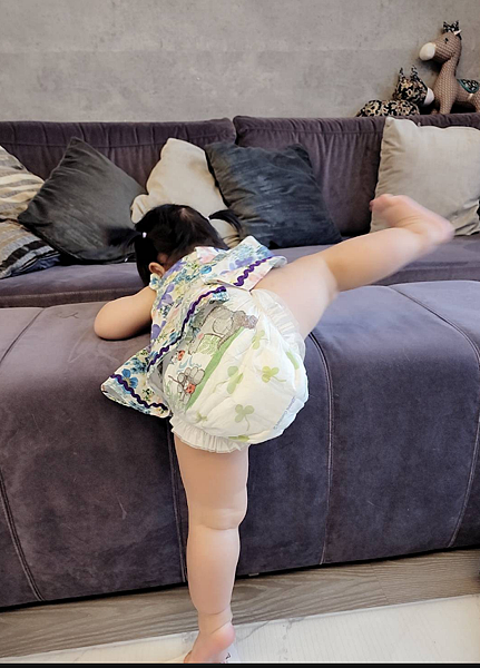 一歲後因為可可妹開始準備學走學爬 動作更大更多更靈活
