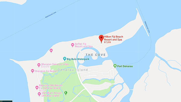 斐濟希爾頓飯店 看好野人遊艇在家門口