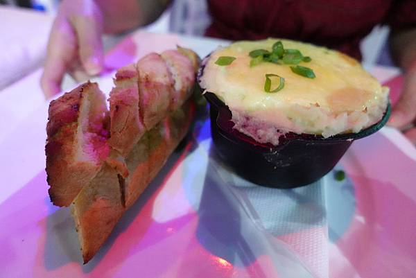 旁邊是起司馬鈴薯和海鮮一起烤熟的沾醬
